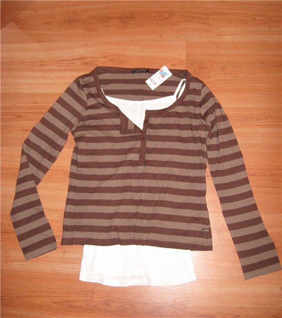 Кофта НОВАЯ, полосатая, внизу маечка. Тоненький трикотаж Привезена из Германии.550 руб.