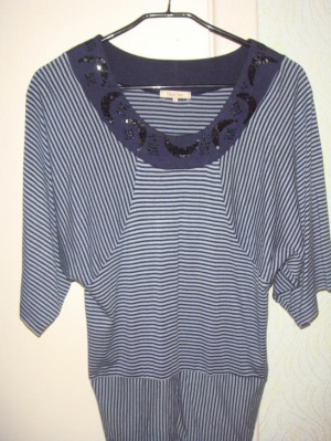Кофта в полосочку голубой c синим , фасон летучая мышь, размер 42-44.Одевала пару раз.Отдам за 300 руб.
