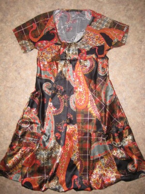 Платье просто супер, оригинальный фасон, яркие цвета. Очень жаль расставаться, но еще грустнее видеть, как висит без дела