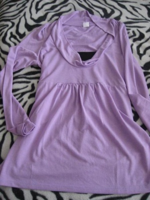Цвет очень приятный-светло сиреневый. Подойдет беременным, т.к. крой свободный есть место для пузика