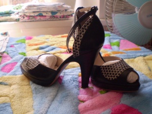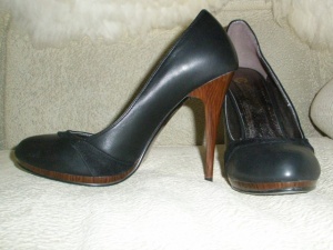 Продам туфли кожзам, черные, классической формы, небольшая платформа и каблук "под дерево". Высота каблука ок.10см (точно не измеряла...). Новые, надевала всего один раз, оказались маловаты. Размер 36-37, на узкую ногу. Продам за 1300р., без торга.