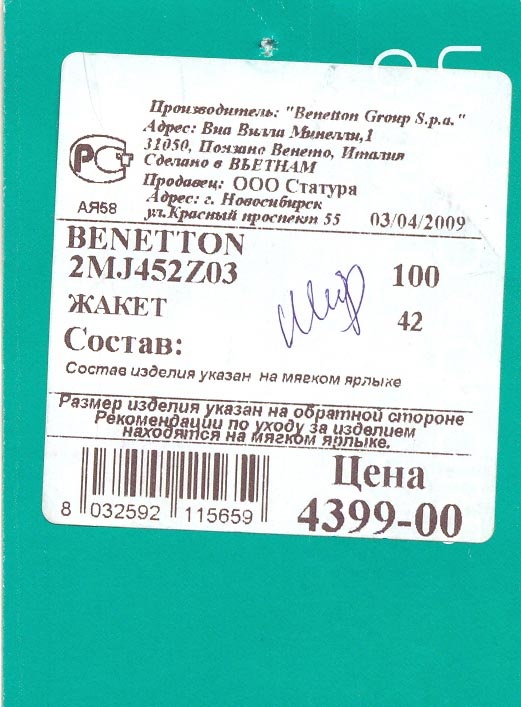 куртка-жакет benetton на 42-44 р-р, на синтетич. подкладе,