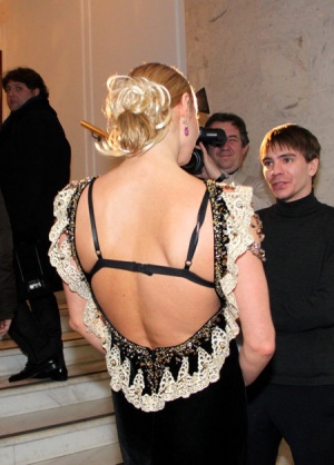 Как-то случайно по телеку увидела, как на сцену выходила Волочкова на вручение чего-то там...в длинном темном платье с открытой спиной...и на этой спине все увидели, что то ли она забыла снять бюстгальтер, то ли так надо и она специально его надела - хотя жуть как некрасиво... В общем, вот... ))))