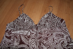 Платье летнее - НОВОЕ!!! Размер на этикетке 44 (на ог92). Интересный фасон - от талии на юбке заложены складки. в которых спрятаны карманы, сзади разрез. Приятная ткань - хлопок с добавлением эластана, за счет чего прекрасно садится по фигуре. На рост 163см длина до колен. Цвет - основной фон молочно-бежевый, рисунок в черно-коричневых тонах. Цена - 600р.ПРОДАНО