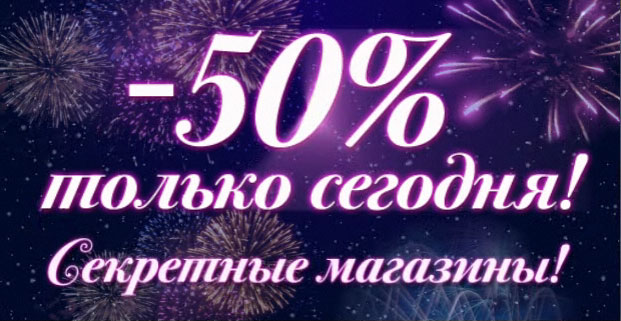 Каждый день новогодняя скидка – 50% на все. Каждый день акция будет проходить в разных магазинах