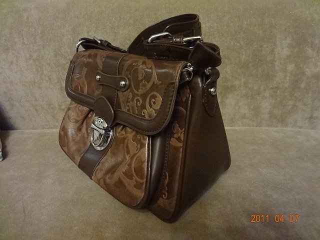 Модель выполнена из высококачественной гладкой натуральной кожи с оригинальным тиснением в виде растительного орнамента, внутри сумки тканевая подкладка. Сумка закрывается на общую молнию и крышку с замком-защелкой. Внутри одно отделение, имеется карман на молнии для документов, карман для мелочей и мобильного телефона. Цвет фурнитуры блестящее золото. Высота ручек позволяет носить сумку, как в руках, так и на плече.