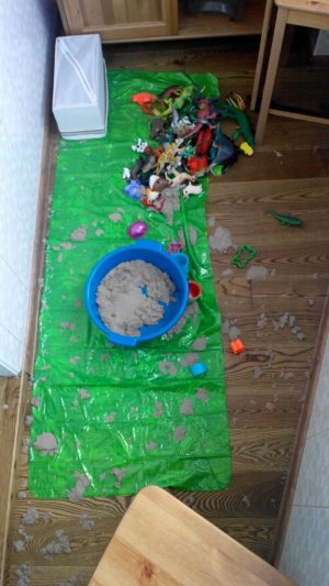 А у меня после каждой трапезы - вся кухня в крошках. Потом Соня в ванной с водой поиграла - ванная и коридор мокрые. Ну и игрушки ровным слоем.