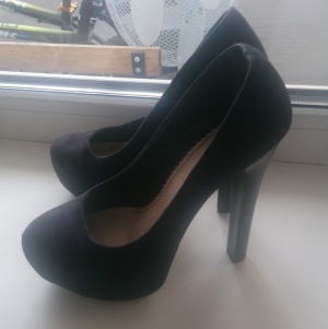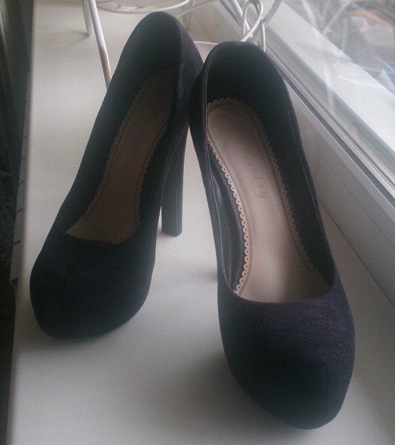 Продам туфли из искусственной замши, б/у недолго и только в офисе. Высота каблука ~14.5 см, в носочной части скрытая платформа.