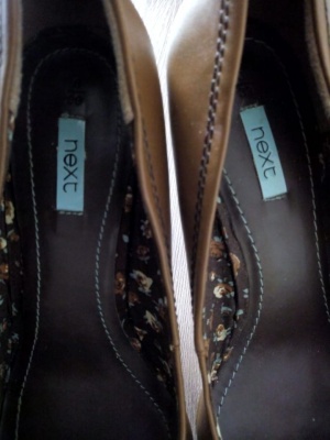 Новые очень красивые туфли Next (страна-производитель Англия). Натуральная кожа. Маркировка 39/6. Длина стельки около 25см. Цвет красивый коричневый (коньячный).