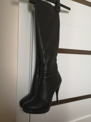 Продам демисезонные сапоги в хорошем состоянии. Набойки заменены на металлические, замки рабочие. На ножку 39-39.5 размера, обхват икры до 35-35,5см. Каблук ~11см.