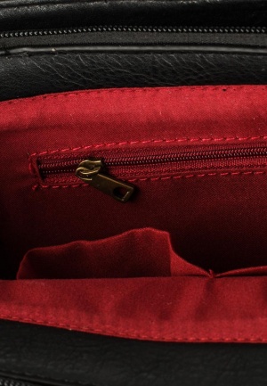 Выполнена из искусственной кожи и текстиля, декорированного пайетками. Одно отделение на молнии, хлястик на магните, внутри - карман на молнии и два накладных кармана. Пристяжной плечевой ремень в комплекте.