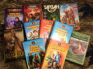 Книги-сериалы 90-х, немного классики из-ва 80-х. Есть еще много классики 80-х, не разбирала коробки еще.