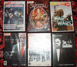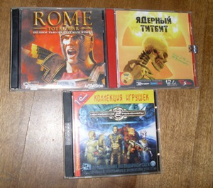 АнтаАнта, Balgur`s Gate 2(четыре диска), NBA 2001, Страна игр (там герои четвертые, казаки ну и всякая такая лабуда=)), Герои четвертые, еще раз герои четвертые =),Казаки, Emperor(четыре диска), Slogun Total War.