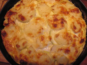 Понравилось ужасно, легко и вкусно. Добавлять вино не стала потому, что, во-первых, ел ребенок, а во-вторых, если смешать хлеб и сыр с двумя столовыми ложками вина, то будет не соус, а сухая масса. И в оригинале предлагалось каждый слой смазывать соусом. У меня как раз хватило на два раза, если смазывать каждый слой, то соуса нужно минимум в два раза больше. И еще, у меня 30 минут запекалось просто так, а потом прикрыла фольгой, а то подгорать запеканка начала, хотя картошка явно сыроватая была сверху.