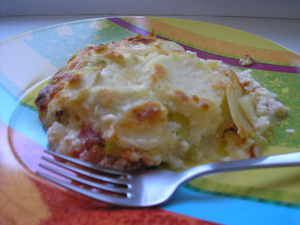 Я, извиняюсь, опять с рецептом запеканки:))) Первое фото - в форме, второе - на тарелке. Идея взята из Школы гастронома, называется там гратен, мои изменения минимальны, касаются только соуса, оригинал тоже напишу – вдруг кому захочется попробовать.