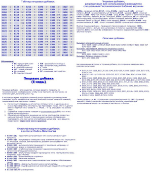 Информации о добавках в инете море. Проще найти таблицу и поместить ее здесь, если Вам так хочется.