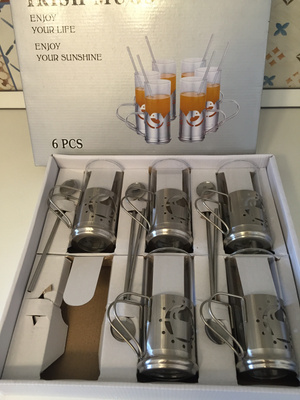 В комплекте 6 стаканов с полстаканниками и 6 ложек с длинной ручкой. 500р