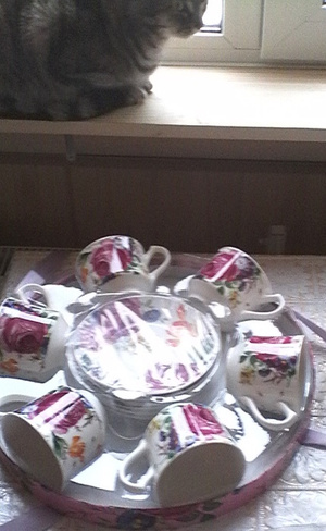 Набор чайный, на 6 персон, третий год из угла в угол перекладываю, из коробки не разу не доставала. Написано, что фарфор, изг. в Китае. отдам за 400р.
