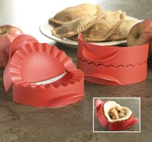 Видел когда-то для вареников. Там две полукруглые пластины с углублением, скрепленные посередине. типа кладешь сочень, фарш, пополам складываешь и оп-ля!