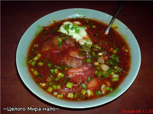 Еще заметила, что если после закладки свеклы в суп, его кипятить, то борщ становится светлее. Поэтому свеклу я добавляю в самом конце и ни в коем случае борщ до кипения не довожу