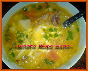 Я процеживаю бульон через сито, после того как мясо сварится, а потом начинаю добавлять остальные ингредиенты.