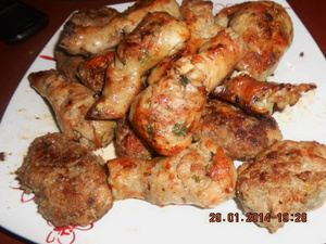 Хотя, начиняя "коченевские голени" чувствовала себя чуть ли не "Левшой" и с тоской вспоминала про "американские" окорочка. Звиняйте за сумбурные фотки, чего успела то сфотала, разрываясь между детской и кухней. Там кое где мелькают котлетки - это у меня осталось малось фарша с позавчерашних тефтелей и сегодняшних голеней - ну я и, как истинно русская женчина, соединила полезное с приятным