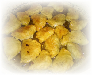 Потом у меня правда случился казус. Я достала еще кусочек теста с морозилки и думала что он пельменный, налепила еще вареников, но они, полежав на столе, стали раздуваться и я поняла что тесто то было пирожковое и я их просто пожарила на сковороде как чебуреки - получилось очень вкусно
