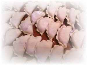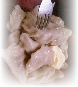 Начинка: в мясорубке перекручиваем квашенную капусту+лук+сало и я еще добавила немного фарша у меня осталось от беляшей. Лепим как вареники, варим как обычные пельмени...Со сметаной или маслом прям ммммм...няшка! Забытый вкус с детства - так бабушка часто делала, а я и вовсе позабыла, если бы любимый не выпросил