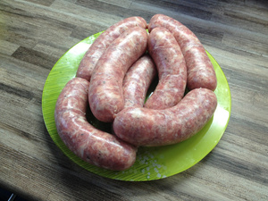 Нет, нормально всё было, мы в пароварке готовили, чуток только проткнули, но ничего не вытекло. С соусами и овощами очень вкусно. Фарш настаивали полдня после перекрутки. Решили, что в следующий раз мясо будем не крутить, а мелко резать, сосиски оказались плотными ... Да и приправ добавим больше (не по граммам, а по ассортименту, просто шалфей не нашли сначала, да и некоторые приправы тоже не попались на глаз).