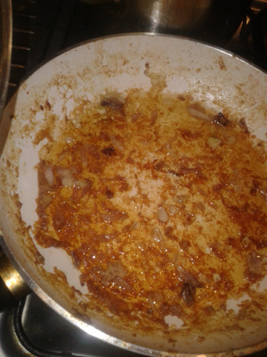 Ниже-снимки сковороды после жарки куриных крыльев,которые я еле отодрала
