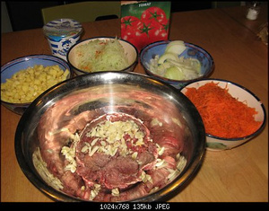 Мясо: баранина, преимущественно грудинка, ребра, пара кусков мякоти от окорока, общий вес - килограмма 2 -2,5. Должно быть порублено/порезано на куски весом 100-150 грамм.