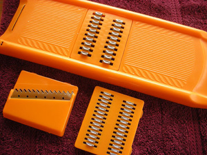 Раньше пробовала покупать шинковки, подешевле, но они трут, т.е. неравномерная получается соломка, а эта штука именно режет, ровненько.