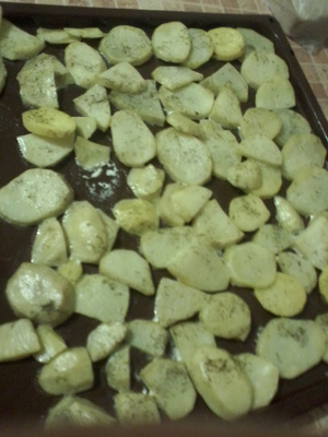 №9 А я просто картофель на ломтики порезала,посолила,обваляла в майонезе и посыпала укропчиком. И в духовку.