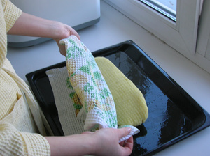 Замочить в в холодной воде на 15-20 минут, промыть, подсушить от лишней влаги.