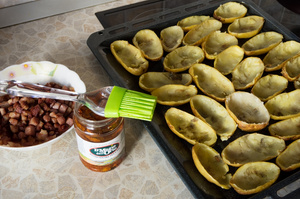 Получившиеся лодочки смазываю изнутри своим любимым ароматным маслом из-под вяленых помидор и отправляю в духовку минут на 10-15 допекаться до хруста.