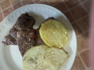 На втором листе готовился антрекот на косточке.Осталось украсить,а можно и так скушать.