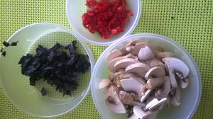 Еще я добавила 1 стебель сельдерея и 5 крупных шампиньонов.