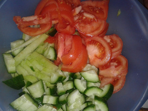 У меня как всегда все просто и лениво и из того, что завалялось в холодильнике.