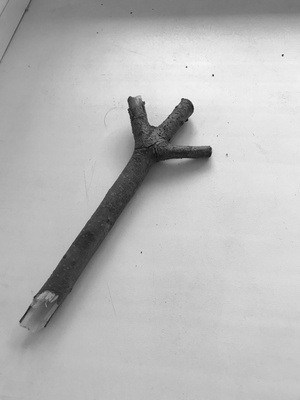 Такими палками-ковырялками народ грибы в лесу ищет. Ими удобно старую листву ворошить и под ней искать грибы. Я бы не придавал этому какого-то оккультного значения. Скорее всего, ребенок использовал ее как игрушку и потом забыл.