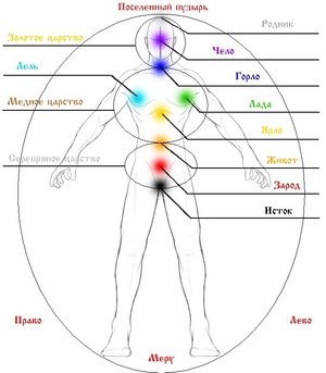 После данной расстановки обнаружилось, что древние славяне это знали. В их системе чакт, в отличии от индийской, человек имеет в грудине два центра! Слева Лада, справа Лель! (на картинке подписано где право, где лево )