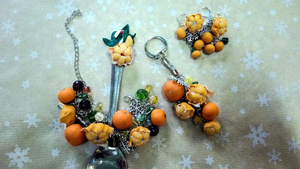 Конкретно эти - из керамических кабошонов, сделанных в одном экземпляре. Проще говоря, вторых таких нет.