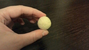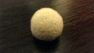 И еще недавно захотелось попробовать свалять зайчика. Купила все необходимое. И для эксперимента, чтобы понять, как оно мне, сваляла небольшой шарик из шерсти. Понравилось. И сам шарик приятно держать в руках.