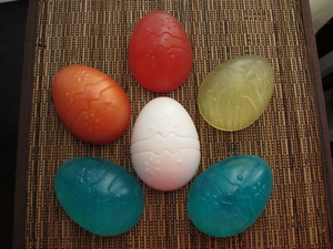Вот результат предпраздничного ажиотажа, понаделала на заказ немного мылок, в том числе и яйца пасхальные