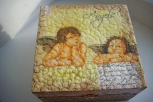 На обычную деревянную заготовку шкатулки нанесена яичная скорлупа,а по ней уже салфетка