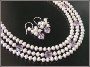 Комплект "Укрощение строптивой". Материала - речной жемчуг, фальш-жемчуг, японский бисер Toho, металлическая фурнитура.