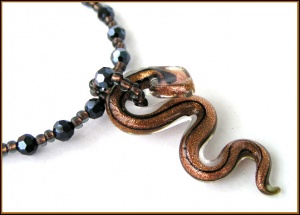Венецианское стекло, чешское стекло, металлофурнитура, кожаный шнур.