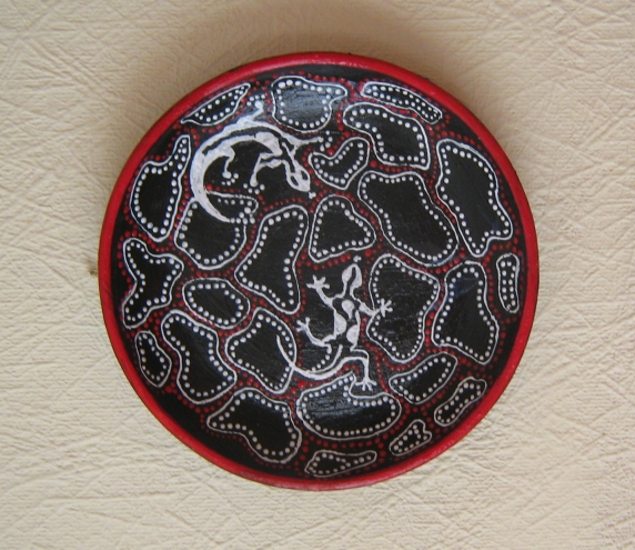 В декоре я использовала 3 цвета - черный, белый и красный. Доминирующий цвет (цвет фона) черный. Такие цвета делают этот предмет интерьера абсолютно универсальным для любого интерьера, не зависимо от цвета обоев, мебели и текстиля. Работа покрыта глянцевым немецким лаком, придающим очень благородный блеск и стойкость.
