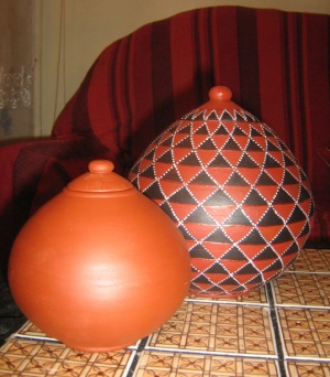 Вазы-копилки это полностью авторская работа, начиная с создания формы (я заказывала у очень замечательного гончара по своей картинки), до самой росписи, которая очень кропотлива и трудоемка. Готовую копилку я покрываю очень качественным немецким лаком. Для росписи использую акриловые художественные краски.