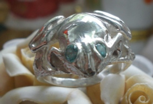 Очень красивое кольцо в виде двух лягушек, держащих зеленый камень. Серебро 925 пробы, вес - 3,12 гр., вставка - зеленый фианит, размер - 15,5. п.3
