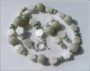 Полые бусины-лэмпворк, натуральный перламутр, стеклянный жемчуг.